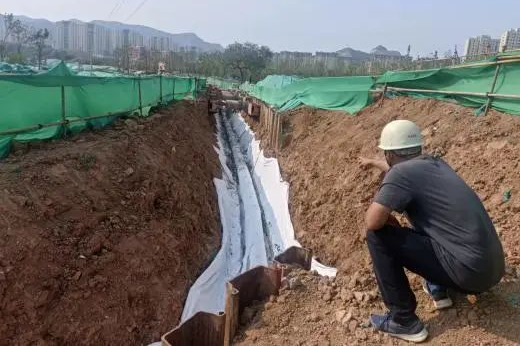 百合園林集團(tuán)一線工作人員檢查排水溝槽,確保排水通暢