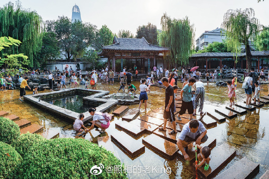 另外在趵突泉和五龍?zhí)豆珗@內(nèi),都有一處清泉石上流,這里的水剛好沒過腳丫處,許多家長帶著孩子來到這里親水戲水。孩子們在水里玩得不亦樂乎,或是掬一捧泉水灑在空中,或拿著小水槍與小伙伴們互動(dòng),渾身濕透了也不亦樂乎。