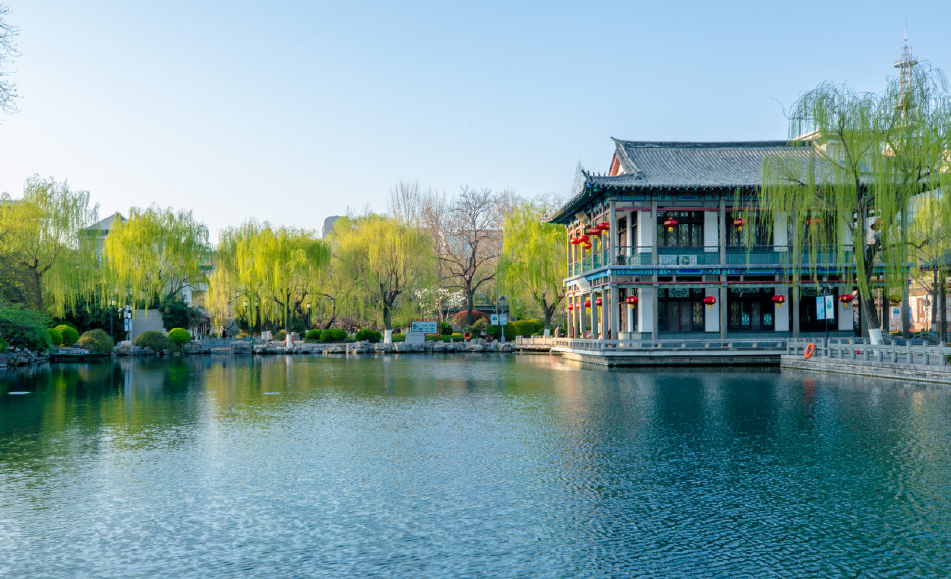 根據(jù)北魏地理學(xué)家酈道元《水經(jīng)注》記載,五龍?zhí)对缭诒蔽簳r期就是風(fēng)景名勝區(qū),稱為“凈池”、“大明湖”。“大明湖”最初說的是五龍?zhí)兑粠АL拼鸥?ldquo;海右此亭古,濟(jì)南名士多”所贊揚(yáng)的歷下亭,也是在五龍?zhí)叮皇呛髞須v下亭經(jīng)過兩次遷移,到清初才定居今大明湖的島上。