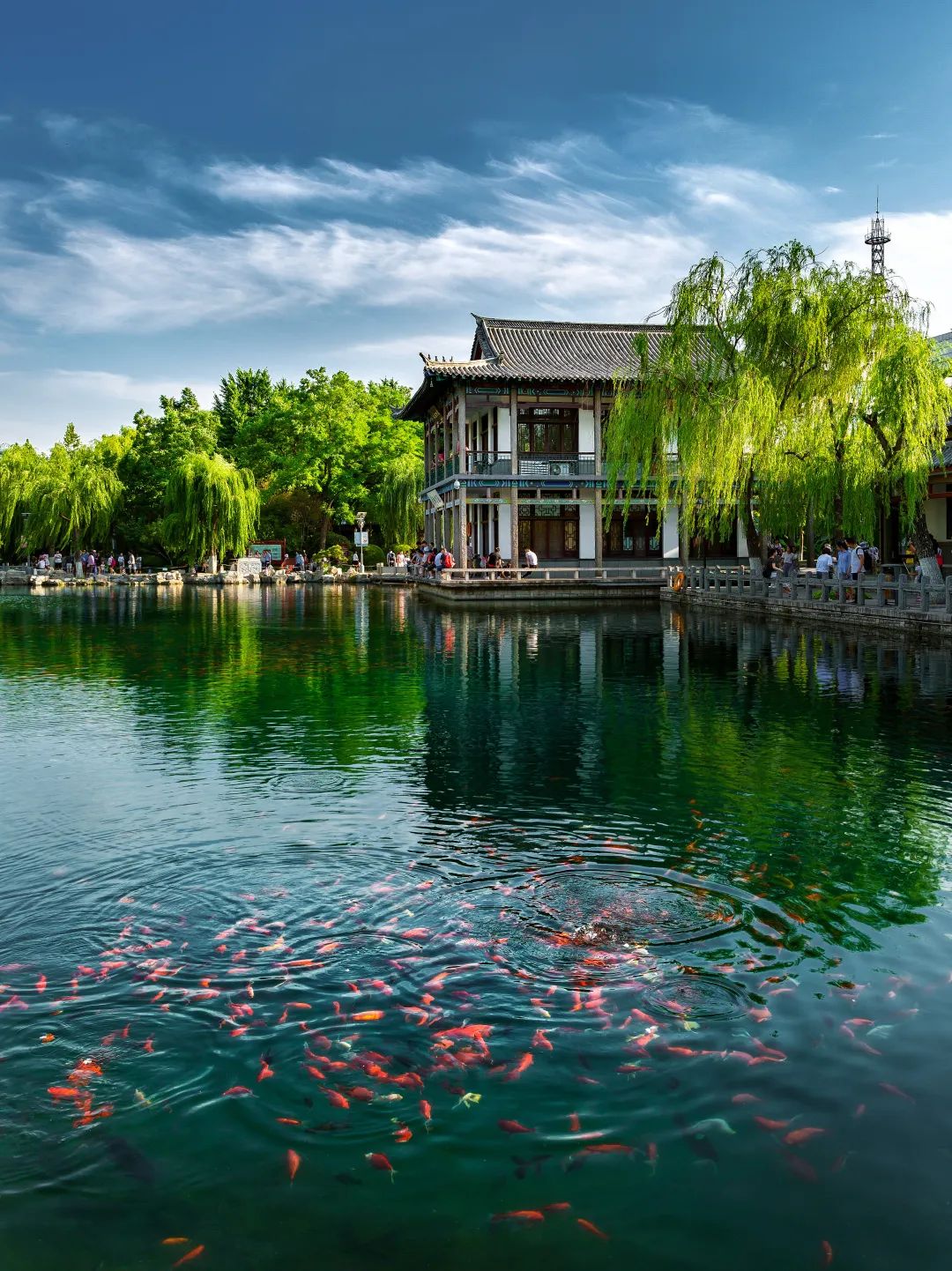 五龍?zhí)端鎸掗煟纬喝珑R。怪石嶙峋的假山,靜默地守護(hù)著一汪汪清泉。這里有潭、池、溪、港構(gòu)成的秀美景觀,也有秦瓊忠肝義膽的故事傳說,所有的一切,都讓五龍?zhí)段裏o數(shù)游人來此,或聽泉賞魚,或游覽古跡舊址,在燦爛的花樹間流連忘返。這些關(guān)于五龍?zhí)兜拿孛苣阒蓝嗌伲?/p>