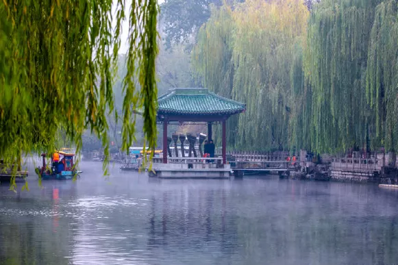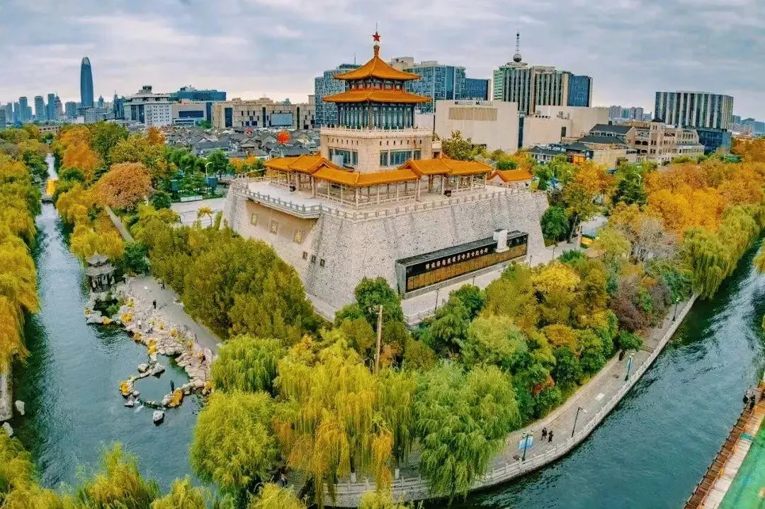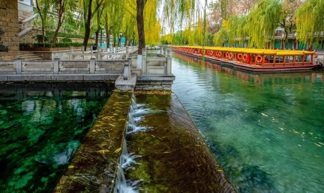 濟(jì)南護(hù)城河全長6.9公里,是國內(nèi)唯一河水全部由泉水匯流而成的護(hù)城河,一河連百景,河兩岸垂柳隨風(fēng)搖曳、群泉競涌。冬日里的護(hù)城河,真正賞景好去處。