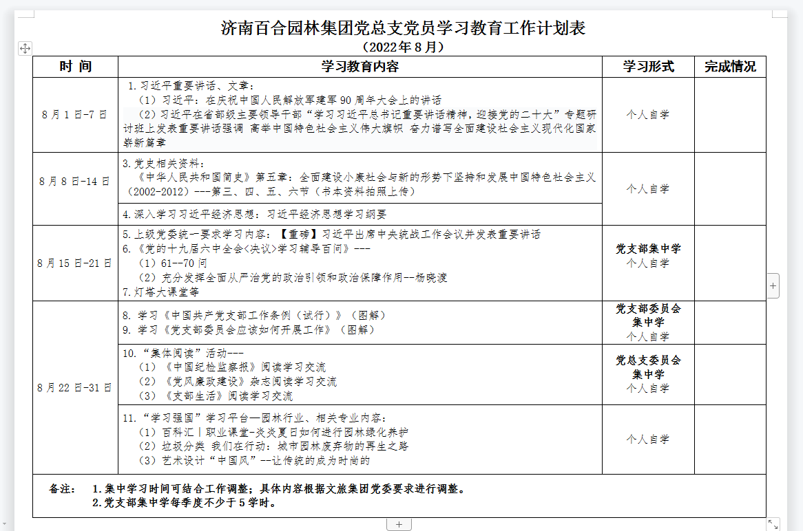 根據(jù)濟(jì)南文旅集團(tuán)黨委關(guān)于學(xué)習(xí)統(tǒng)戰(zhàn)工作文件、習(xí)近平同志講話精神的工作要求,百合園林集團(tuán)黨總支積極響應(yīng)、深化落實(shí)。將《中國(guó)共產(chǎn)黨統(tǒng)一戰(zhàn)線工作條例》和習(xí)近平總書(shū)記在中央統(tǒng)戰(zhàn)工作會(huì)議上的重要講話精神等學(xué)習(xí)內(nèi)容納入8月份黨員學(xué)習(xí)教育計(jì)劃。通過(guò)黨支部集中學(xué)、個(gè)人自學(xué)等多種方式開(kāi)展學(xué)習(xí),以此保證學(xué)習(xí)效果,提高廣大黨員領(lǐng)導(dǎo)干部對(duì)統(tǒng)戰(zhàn)工作重要性的理解和認(rèn)識(shí)。