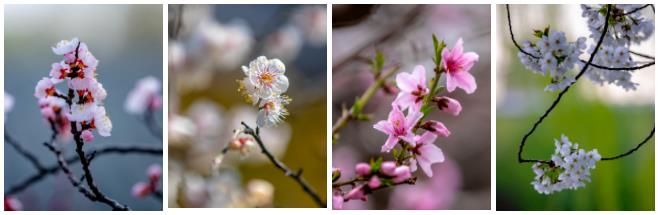 ②花梗很短,貼著樹(shù)枝一團(tuán)團(tuán)盛開(kāi),很飽滿;