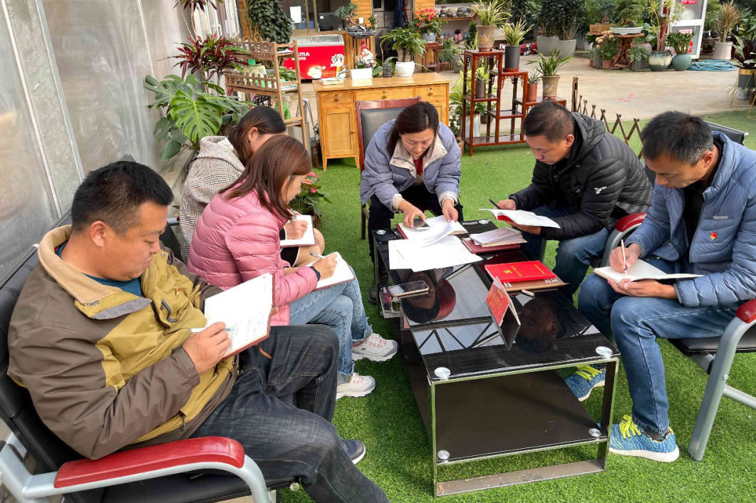 百合園林黨總支部分黨員在花卉市場項(xiàng)目點(diǎn)開展學(xué)習(xí)