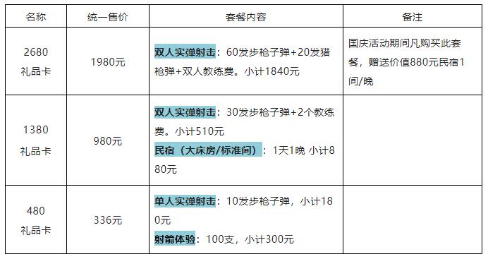 ①實(shí)彈射擊:小口徑5發(fā)+獵槍5發(fā)+單人1對(duì)1教練費(fèi)