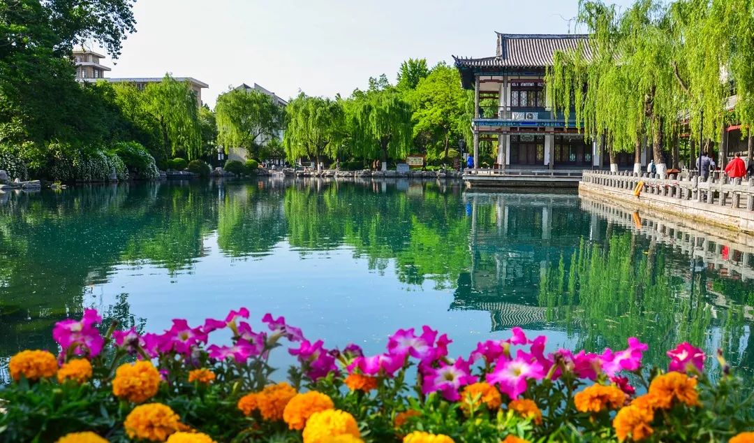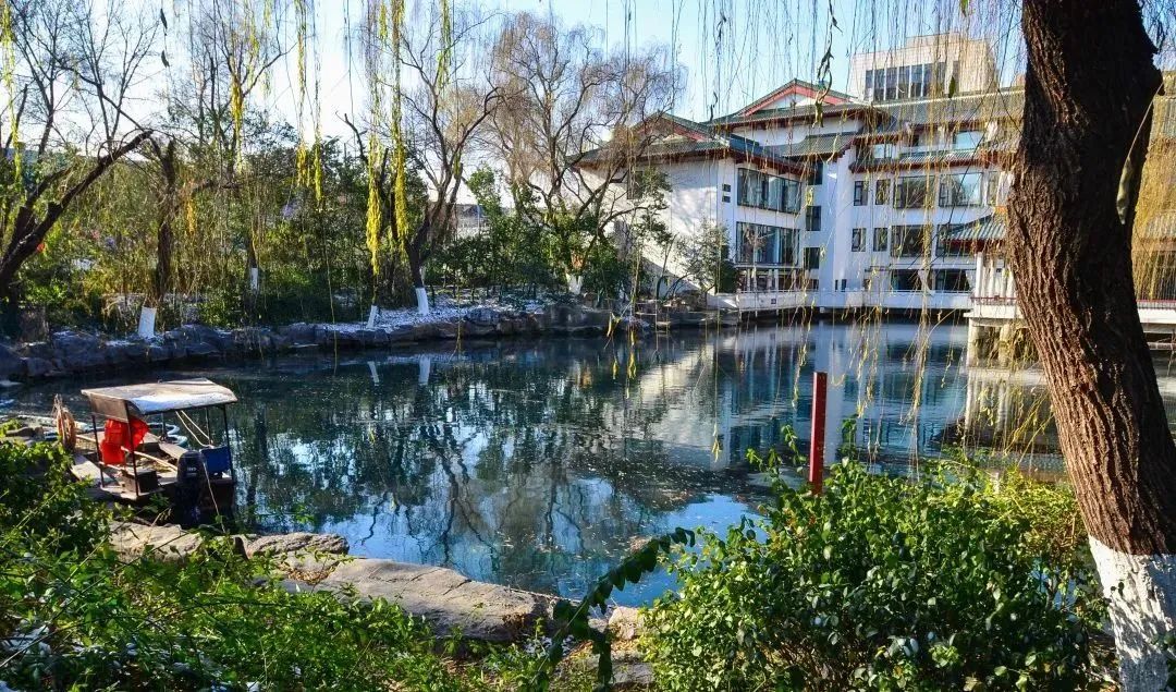潭邊曲欄畫橋、亭臺(tái)樓閣、楊柳倒垂、怪石嶙峋,是一處絕美的旅游勝地。