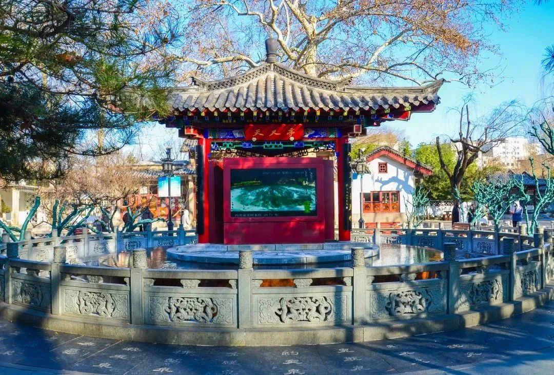 天尺亭是趵突泉地下水位觀測(cè)點(diǎn),為北方園林建筑罕見的仿古園林竄頂式三角亭構(gòu)造,三面電子屏以圖示形式標(biāo)明了濟(jì)南泉水成因,可以直觀的讓游客和市民了解濟(jì)南泉水水位和泉水知識(shí)。