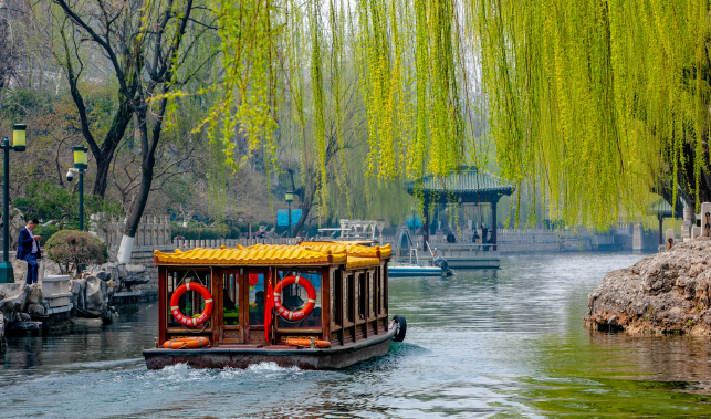 春天的泉城濟(jì)南,除了漫步游覽,乘船也是不錯(cuò)的選擇。護(hù)城河早已實(shí)現(xiàn)全線通航,穿越大明湖,鏈接黑虎泉、趵突泉、五龍?zhí)度笕阂约敖夥砰w、泉城廣場(chǎng)、百花洲......一船連百景,閱盡泉城風(fēng)光,手握一杯泉水茉莉花茶,窗前,泉水叮咚,垂柳含情。