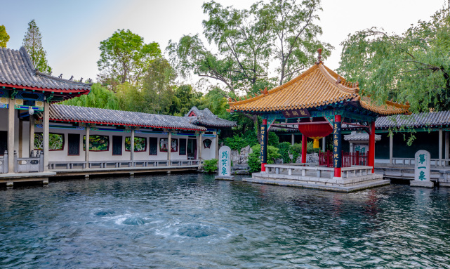 趵突泉是國(guó)家5A級(jí)旅游景區(qū)特色園林,與濟(jì)南千佛山、大明湖并稱為濟(jì)南三大名勝,乾隆皇帝南巡時(shí)因趵突泉水泡茶味醇甘美,冊(cè)封趵突泉為“天下第一泉”。