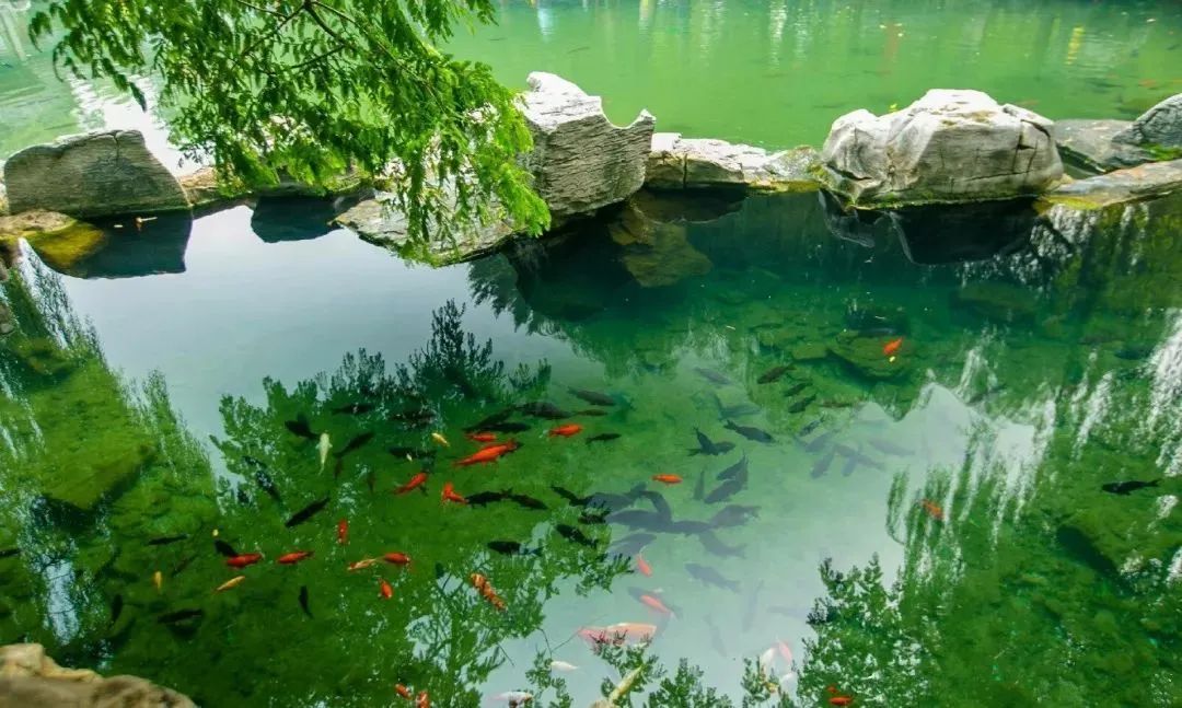 閑暇之時(shí),在這些泉池旁邊待上半天,欣賞著錦鯉在水中游來游去,沉浸在魚與水的快樂世界里。