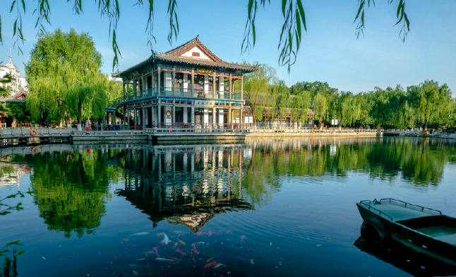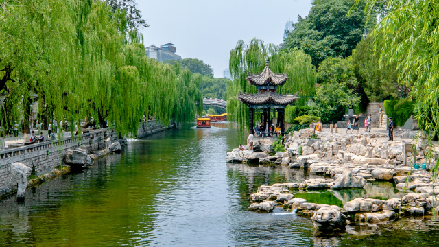濟(jì)南護(hù)城河全長6.9公里,串起了大明湖、趵突泉、黑虎泉、五龍?zhí)?,仿佛串起了一顆顆柔潤的珍珠,在這片沃土上閃閃發(fā)光。