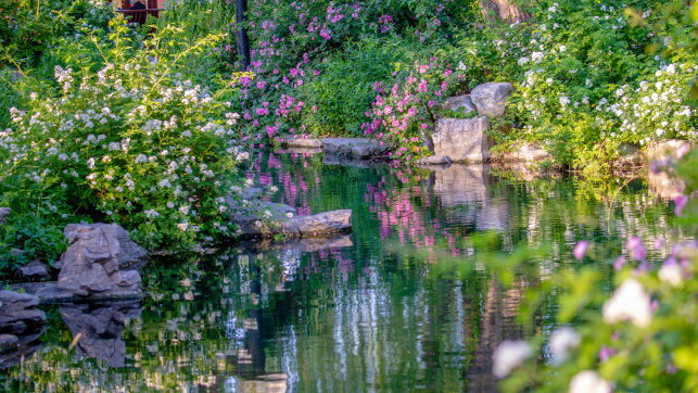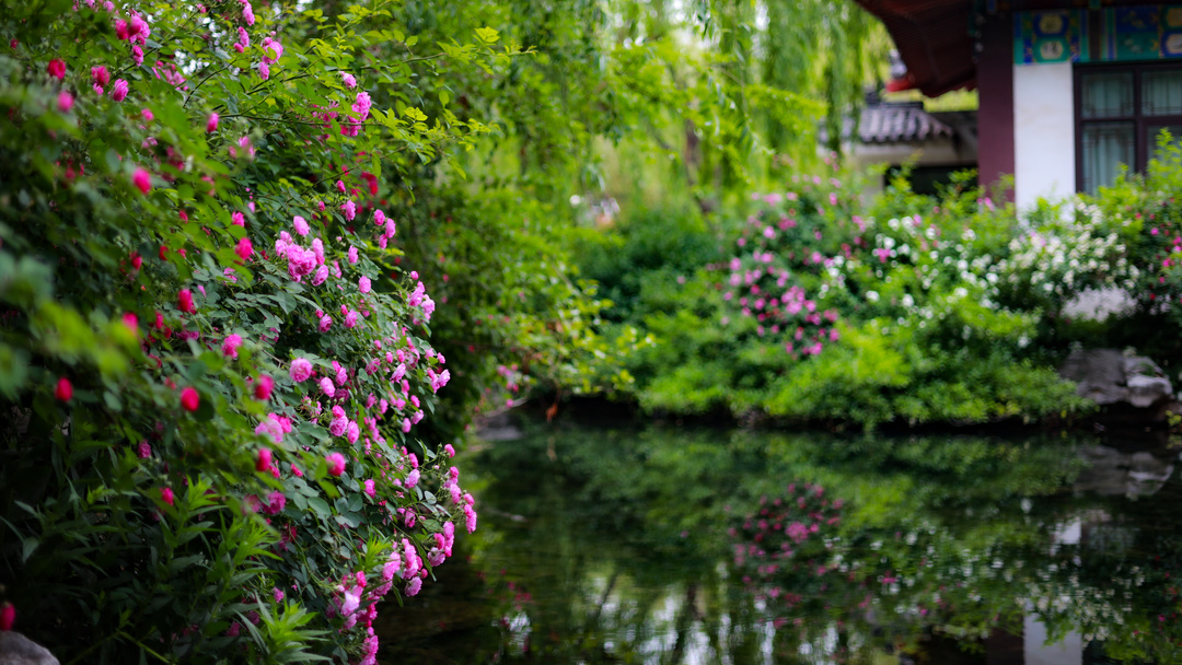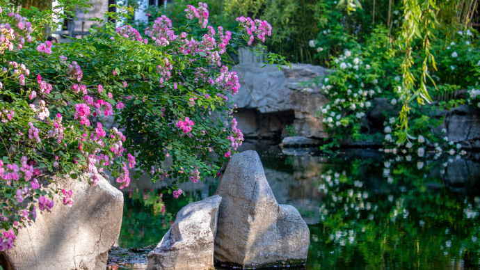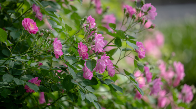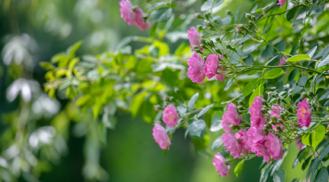 爭(zhēng)相開放的薔薇花姹紫嫣紅一片