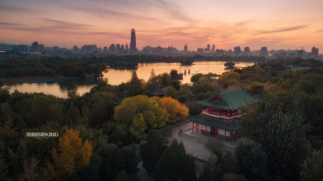 漫天的晚霞與濟(jì)南這座城市交相輝映