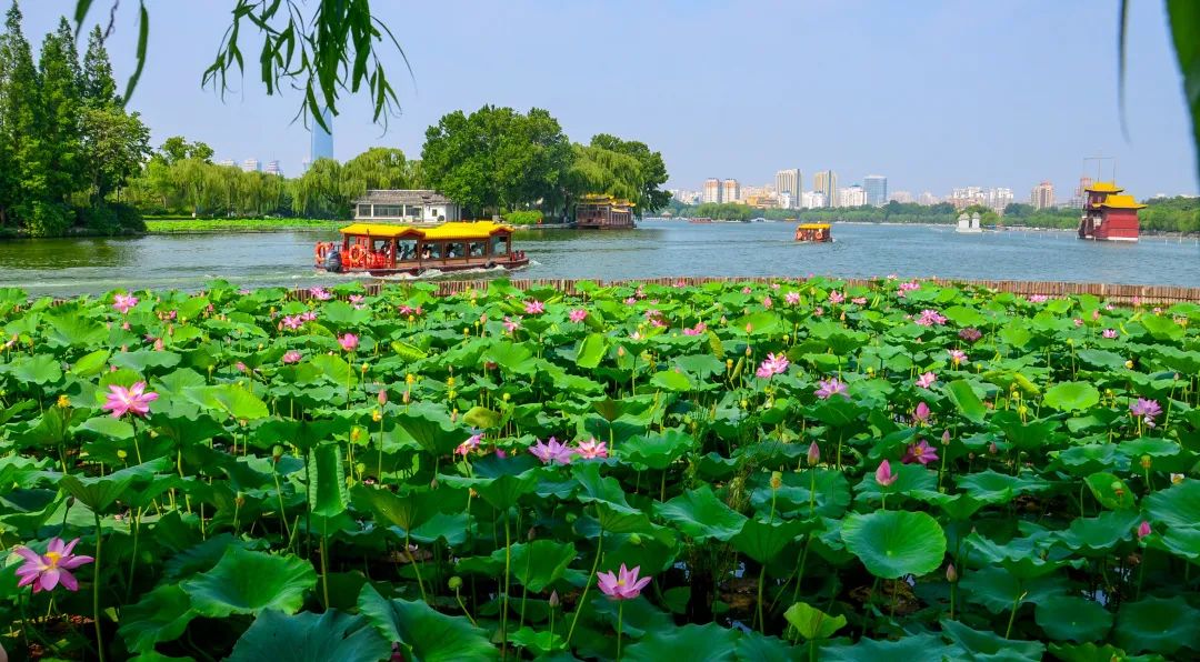 四面荷花三面柳,一城山色半城湖。隨著大明湖景區(qū)荷花競相綻放,濟(jì)南第37屆荷花藝術(shù)節(jié)也如約而至,從7月1日開幕持續(xù)至8月20日。