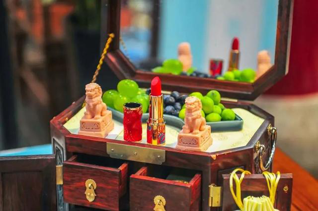 走進(jìn)古色古香的南豐戲樓,落座實(shí)木桌椅,一杯清泉茶飲在精致的茶杯中卷起“浪花”,或是濃郁醇香的拉花咖啡熱氣氤氳,流轉(zhuǎn)鼻翼間,點(diǎn)上最受喜愛(ài)的“雨荷梳妝匣”,三層的精致茶點(diǎn)以梳妝盒的形式呈現(xiàn),粉色的小獅子慕斯,威武又可愛(ài)。