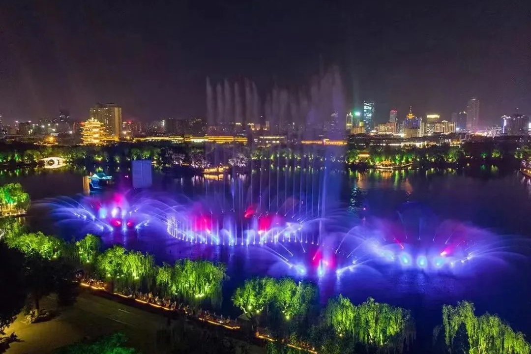 若是趕巧,還能在大明湖北岸觀一場(chǎng)“明湖秀”,湖水以四散的態(tài)勢(shì)向空中奔涌,配合著多彩的光譜,組成一幕幕水屏在夜色中綻放,驚艷了整個(gè)泉城的夜晚。
