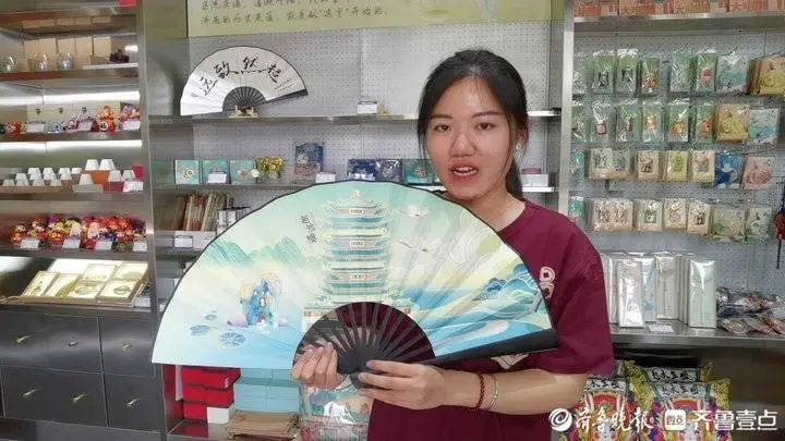 “(超然樓)文創(chuàng)折扇的正面是國潮版的超然樓,還有‘月牙飛瀑’勝景以及濟(jì)南的市鳥白鷺。”天下第一泉文創(chuàng)中心大明湖店路悅說,文創(chuàng)折扇背面是超然樓牌匾上的“超然致遠(yuǎn)”四個字,“剛做出來就賣斷貨了。”