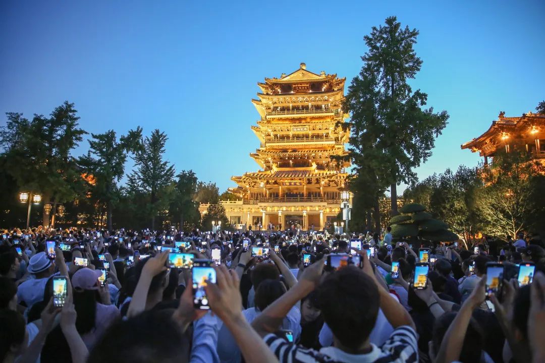旅游“大禮包”吸引了全國各地的游客,大部分是大學(xué)生群體,他們?cè)诖竺骱蠠o意間發(fā)現(xiàn)了超然樓亮燈的“絕美”瞬間,然后短視頻平臺(tái)又添了“一把火”,從而讓超然樓持續(xù)火爆出圈。