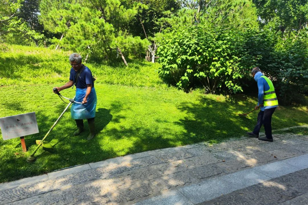 一支“規(guī)范化、精準(zhǔn)化”的養(yǎng)護(hù)隊伍養(yǎng)護(hù)著景區(qū)的一草一木,對佛慧山牌坊兩側(cè)的銀杏樹、林蔭大道兩側(cè)的五角楓、境水映秀噴泉四周等區(qū)域進(jìn)行精細(xì)化養(yǎng)護(hù)管理,澆水方式上采用噴灌帶、人工管道澆灌等相結(jié)合方式。根據(jù)現(xiàn)場情況采用高空作業(yè)車、粉碎車等先進(jìn)的園林機(jī)械設(shè)備,提高了精細(xì)化養(yǎng)護(hù)管理,打造出一片生機(jī)勃勃、綠樹成蔭、花團(tuán)錦簇的景色。