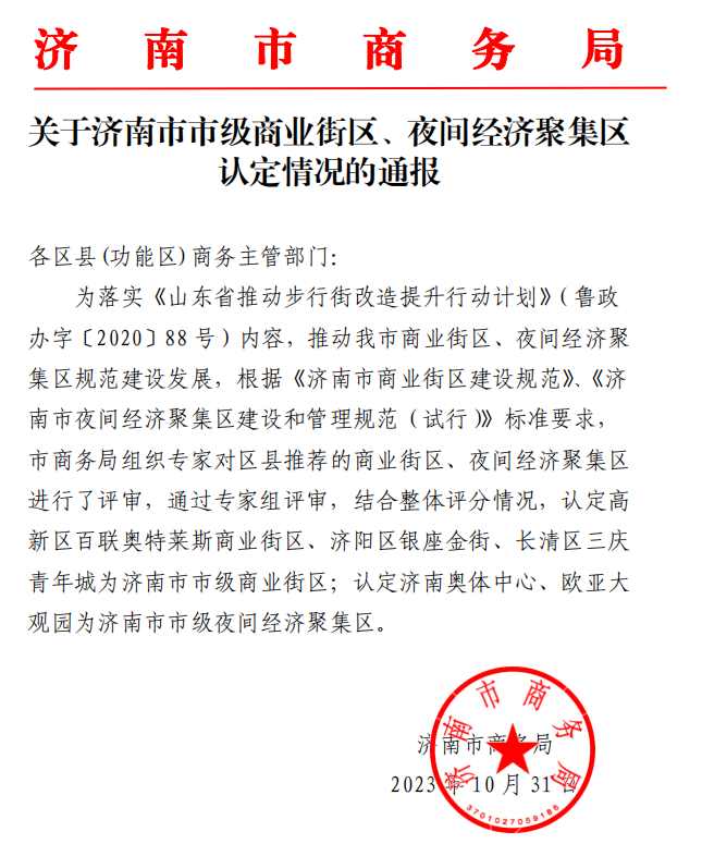 濟南奧體中心成功入選市級夜間經(jīng)濟聚集區(qū)