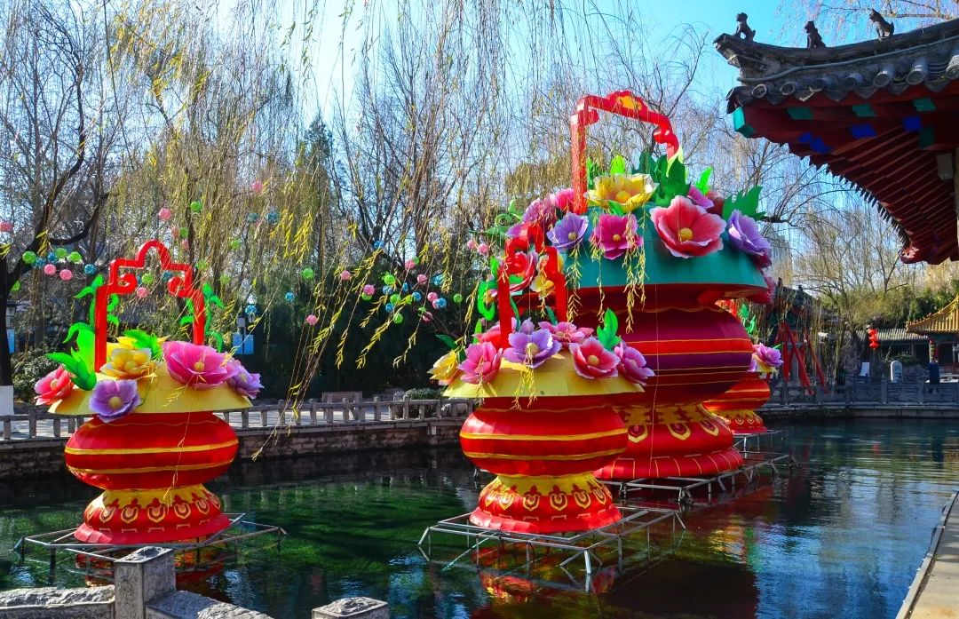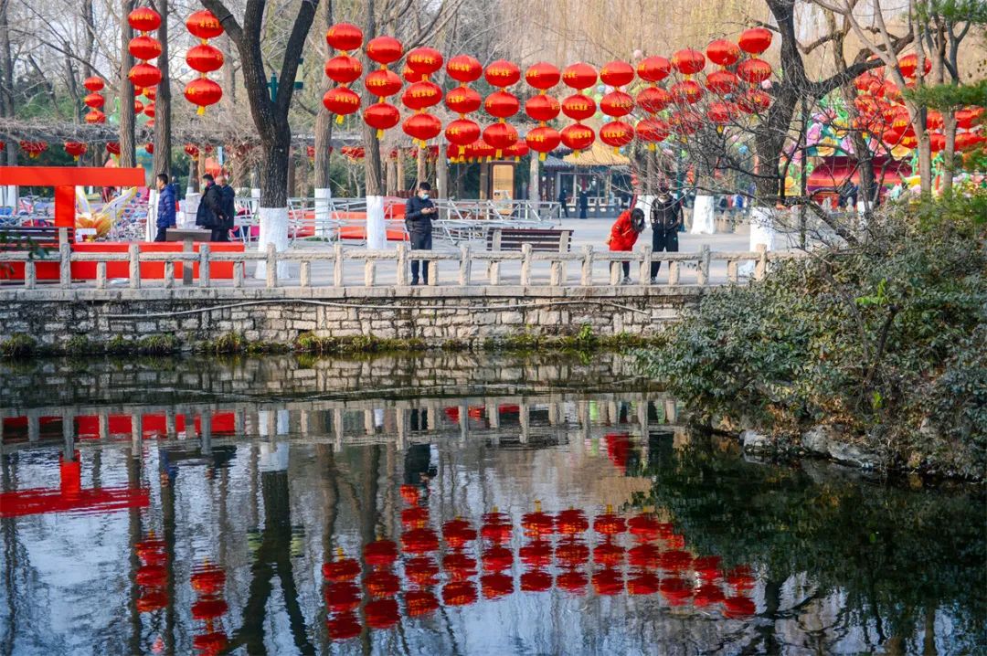 假日期間,趵突泉地下水位依舊保持在為29.50米以上,三股水噴涌正歡,眾多游人選擇在元旦假期來(lái)到泉水邊,與泉水親密邂逅,歡度新年的到來(lái)。公園新春花燈正在安裝中,各種主題的花燈分散在各個(gè)泉池內(nèi),在歡騰的泉水映襯下,十分好看,充滿(mǎn)了喜慶的節(jié)日氣氛,彩色的鸚鵡、嬌俏的荷花、火紅的火烈鳥(niǎo)以及象征美好寓意的白菜和如意等都已安裝好,等待最后的亮相。