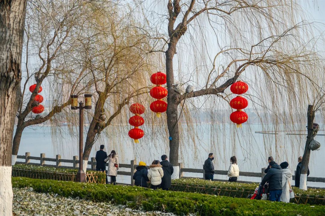 天下第一泉風(fēng)景區(qū)內(nèi)大紅燈籠高高掛起,一片紅紅火火。元旦當(dāng)天,不少市民游客來(lái)到大明湖畔,在新年的第一縷陽(yáng)光中,迎接2023年的到來(lái)。新年伊始,日出東方,色彩艷麗繽紛而又美麗多姿,帶來(lái)了新一年的生機(jī)與希望。