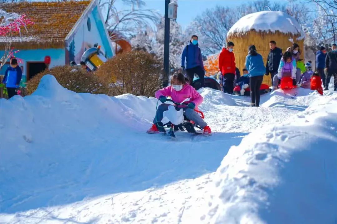 元旦假期,游人們?cè)谂荞R嶺·齊魯雪鄉(xiāng)滑雪圈、坐雪橇、騎雪地摩托、與萌寵互動(dòng)……這個(gè)沉浸式冰雪樂(lè)園,讓大小朋友們玩得不亦樂(lè)乎!
