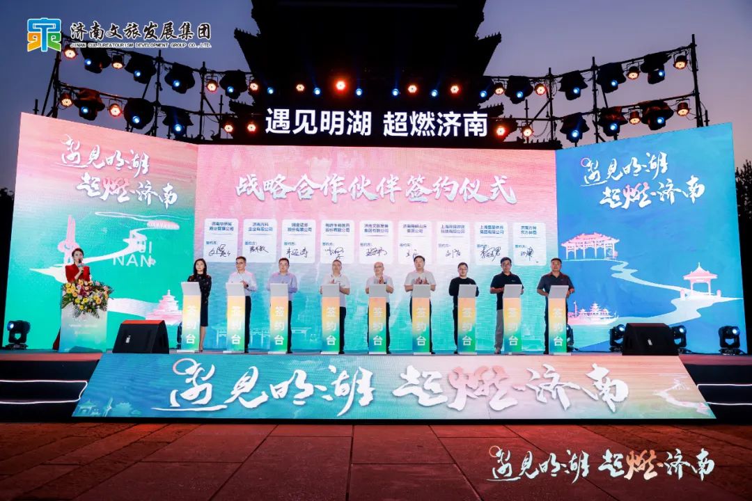 為了更好地踐行“百”企聯(lián)動,搭建以企業(yè)為主體、市場為導(dǎo)向的開放型合作平臺。發(fā)布會現(xiàn)場舉行了文旅集團合作品牌簽約儀式。濟南文旅集團分別與濟南舜耕山莊集團公司、梅曄生物醫(yī)藥股份有限公司、上海嗶哩嗶哩科技有限公司、國金證券股份有限公司、上海復(fù)星體育集團有限公司、濟南萬科企業(yè)有限公司、濟南方特東方神畫、濟南華僑城商業(yè)管理公司等品牌代表進(jìn)行戰(zhàn)略協(xié)議簽訂。未來簽約單位將圍繞泉城夜經(jīng)濟課題研究、文旅體產(chǎn)業(yè)運營、智慧文旅建設(shè)、文旅產(chǎn)業(yè)衍生品開發(fā)、投融資項目合作、文旅IP項目打造等方面開展合作。
