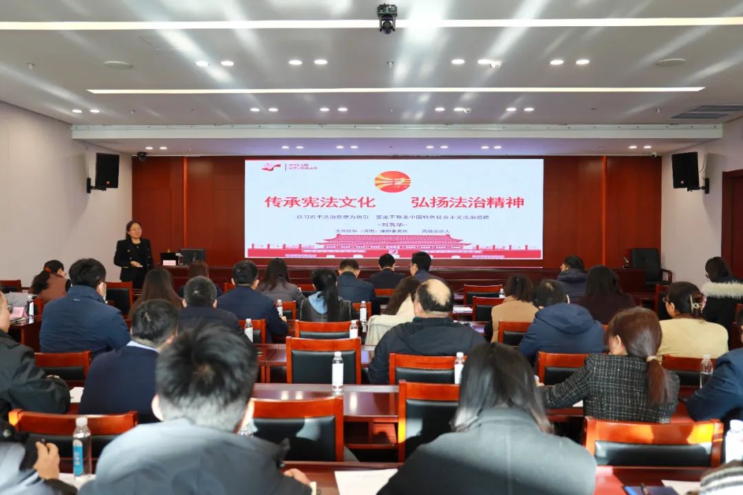 為大力弘揚憲法精神,提升集團公司治理水平,提高董高監(jiān)人員規(guī)范履職能力,12月7日,濟南文旅集團組織開展“憲法宣傳周”主題宣傳暨公司治理法律知識專題培訓。本次培訓由集團黨委委員、副總經(jīng)理張成偉主持,特邀請北京德恒(濟南)律師事務所高級合伙人劉秀華律師授課。集團各部室業(yè)務相關人員,各權屬企業(yè)董事或領導班子成員以及負責企業(yè)“三會一層”相關部門負責人共計50余人參加培訓。