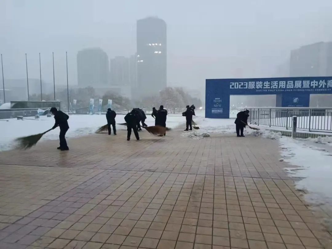 山東國際會展集團(tuán)“以雪為令,聞令而動”,科學(xué)部署、迅速行動,第一時間組織人員對旗下三個會展中心內(nèi)外主要道路路面、卸貨區(qū)、廣場等重點(diǎn)區(qū)域進(jìn)行積雪清理作業(yè),為展館、停車場出入口及卸貨區(qū)開辟安全道路,確保人員的進(jìn)出安全、展會的正常運(yùn)行和撤展安全。
