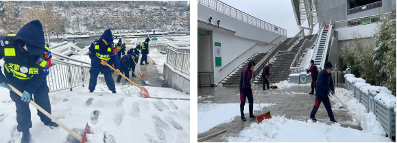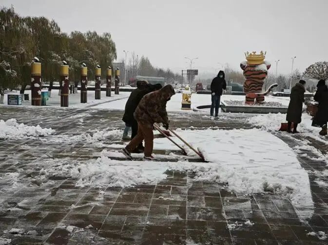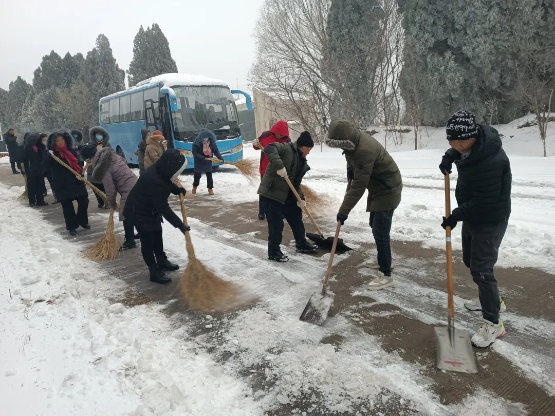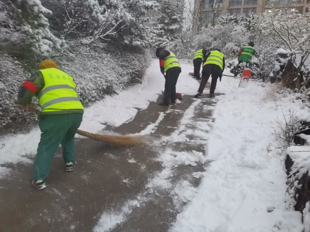 自濟(jì)南市氣象臺發(fā)布寒潮黃色預(yù)警后,文旅積余公司組織召開“掃雪除冰”專題會議,提前部署,做好掃雪物資儲備和應(yīng)急預(yù)案。降雪后,第一時間組建掃雪隊(duì)伍,迅速投入到掃雪工作中,確保項(xiàng)目園區(qū)、道路暢通,群眾出行安全。