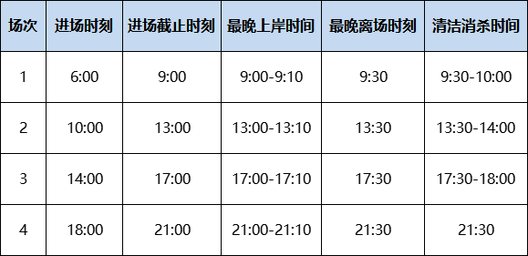 “最晚上岸時(shí)間”:考慮到游泳后需要淋浴、更衣,建議游客在此時(shí)間段內(nèi)上岸,確保預(yù)留出充足時(shí)間進(jìn)行淋浴、更衣,避免聚集,確保能夠準(zhǔn)時(shí)離場(chǎng)。