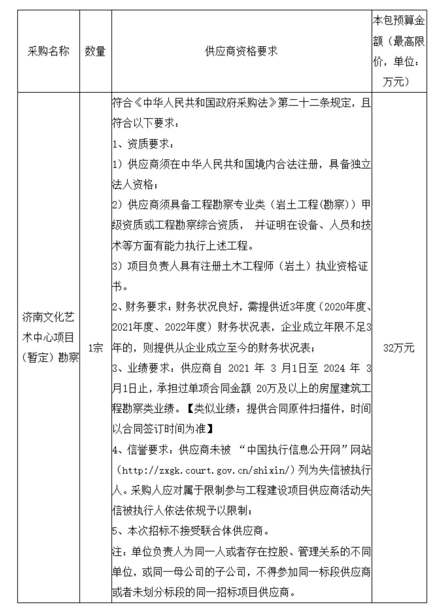 二、采購項目名稱:濟南文化藝術(shù)中心項目(暫定)勘察